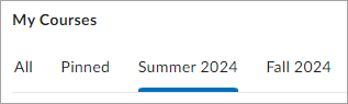 Secondly, the semester will now be listed in D2L as “Term Year” (i.e., Summer 2024). Previously, the semester was listed as “Year Term” (i.e., 2024 Spring). Once a term ends, Academic Technology will update the semester name to be listed chronologically with the previous terms.